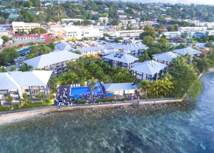 Overlooking the sea, Heritage Park Hotel Honiara offers 4-star accommodation a mere 550 metres from S.I. Visitors Bureau Tourist Information Center. Guests have access to a swimming pool, a fitness centre and Wi-Fi in the rooms.